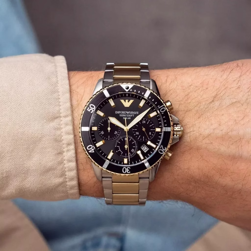 Emporio Armani AR11680 — чоловічий годинник із сучасним підходом до класики, де стиль поєднується з технологією. Модель оснащена кварцовим механізмом із сонячною батареєю: годинник працює від світла, не потребує регулярної заміни батарейки та залишається максимально практичним у повсякденному використанні.